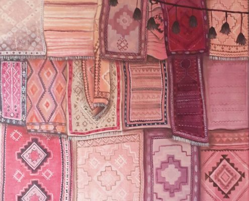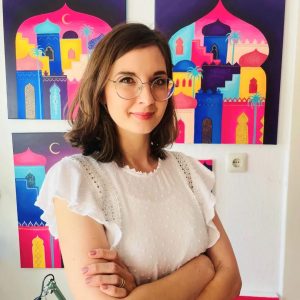 Meine Bilder teilen meine Sicht und magische Erfahrungen aus der orientalischen Welt. Es geht darum, sich zu verlieren und sich selbst wiederzufinden. Es geht um die inspirierenden Momente, Orte, Menschen und Gefühle, die ich auf meinen Reisen erlebt habe. Mit meiner Kunst möchte ich den Betrachter an die magischen Orte teleportieren, von denen ich beim Malen träume. Ich möchte Verbindungen herstellen und Türen zu einer neuen Wahrnehmung der orientalischen Welt mit ihren verschiedenen Religionen und Kulturen öffnen. Ich verwende in meiner Arbeit eine Acryltechnik auf Wasserbasis, kombiniert mit vielen Mustern und architektonischen Formen, um dem Betrachter einen Einblick in die Welt von 1001 Nacht zu ermöglichen und den Traum zu teilen. Meine Arbeit ist sehr detailliert, denn oft sind es die kleinen Details, die notwendig sind, um zu erkennen, worauf es im „großen Ganzen“ und im Leben wirklich ankommt.
